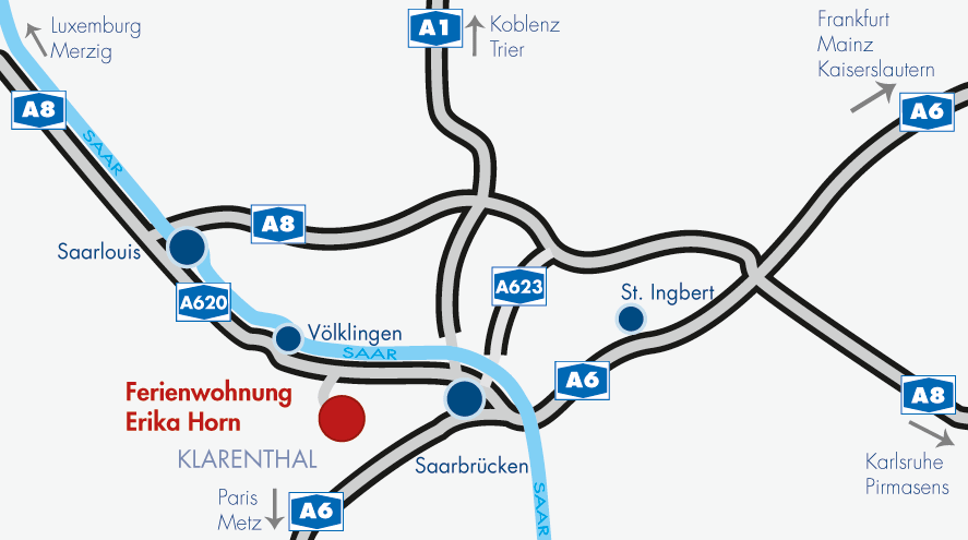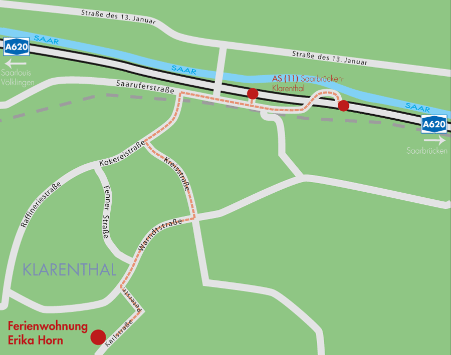 - Auf die A620 auffahren, bis Abfahrt (11) Saarbrücken-Klarenthal.